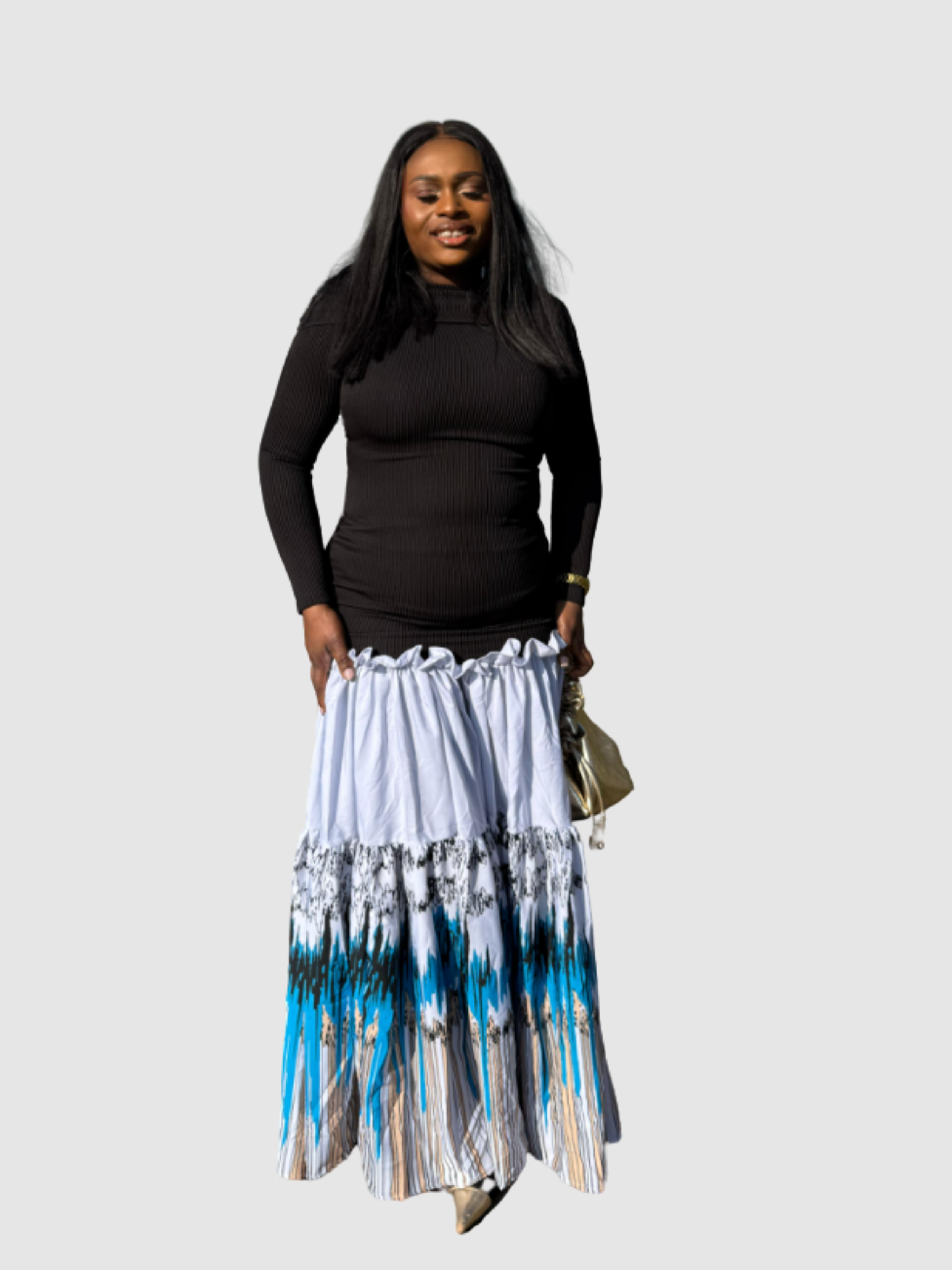 Step into effortless elegance with the Azure Breeze Maxi Skirt, a perfect blend of bohemian charm and modern sophistication. Designed for the fashion-forward woman, this skirt flows beautifully with every step, making it ideal for casual outings, vacations, or special occasions.